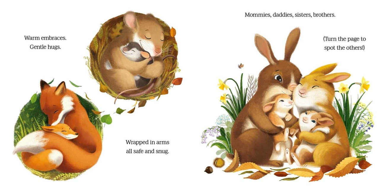 "Some hugs start off soft and sweet, and end in tangled arms and feet! From hugs with fur to hugs with spikes, no two cuddles are alike." Little Bear's friends are snuggling with their families before bedtime, and he wants a cuddle too! Will he get a hug before he goes to sleep? This sweet, loving tale is perfect for a relaxing story time. Made in the USA.