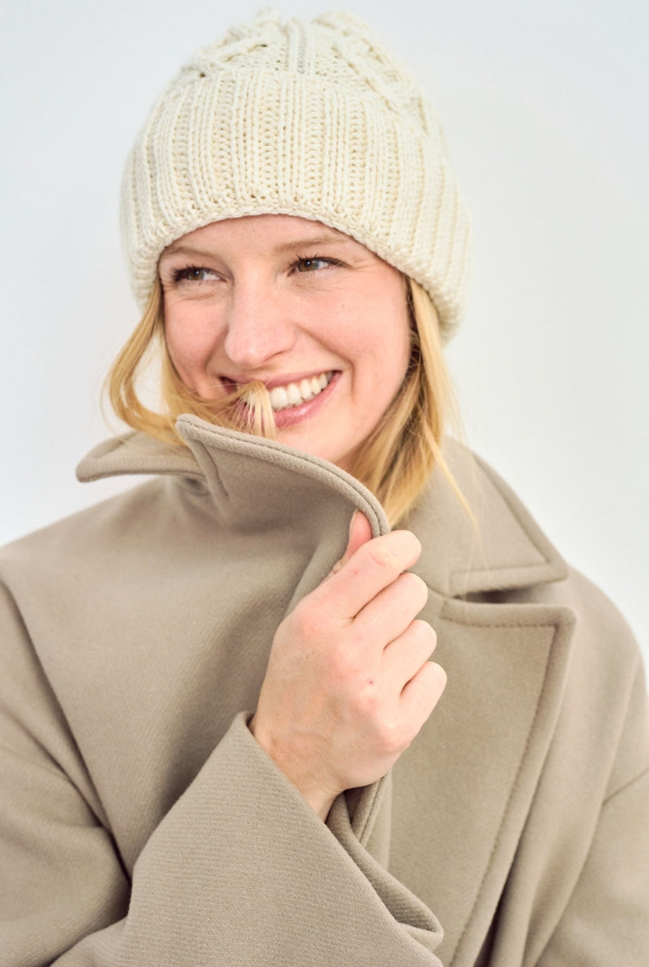 If you’re in search of a hat that keeps your head warm, your ears cosy and your heart full, grab yourself the Mulranny Aran Diamond Stitch Hat.