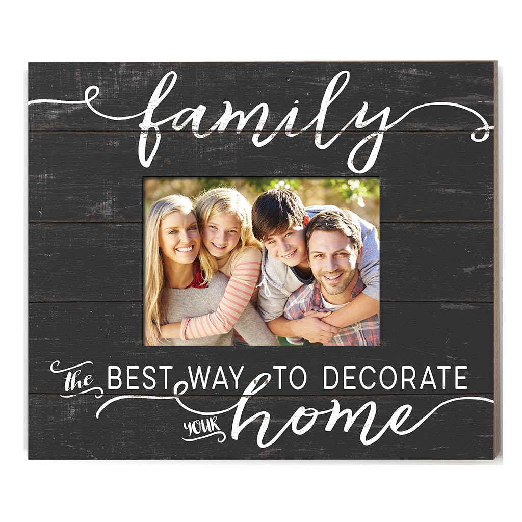 Remember the cherished moments by displaying your favorite memories in this photo frame celebrating family. Great for any occasion. Holds one 5x7 photo. Hangs with keyhole or stands with peg (included). Made in the USA with love.