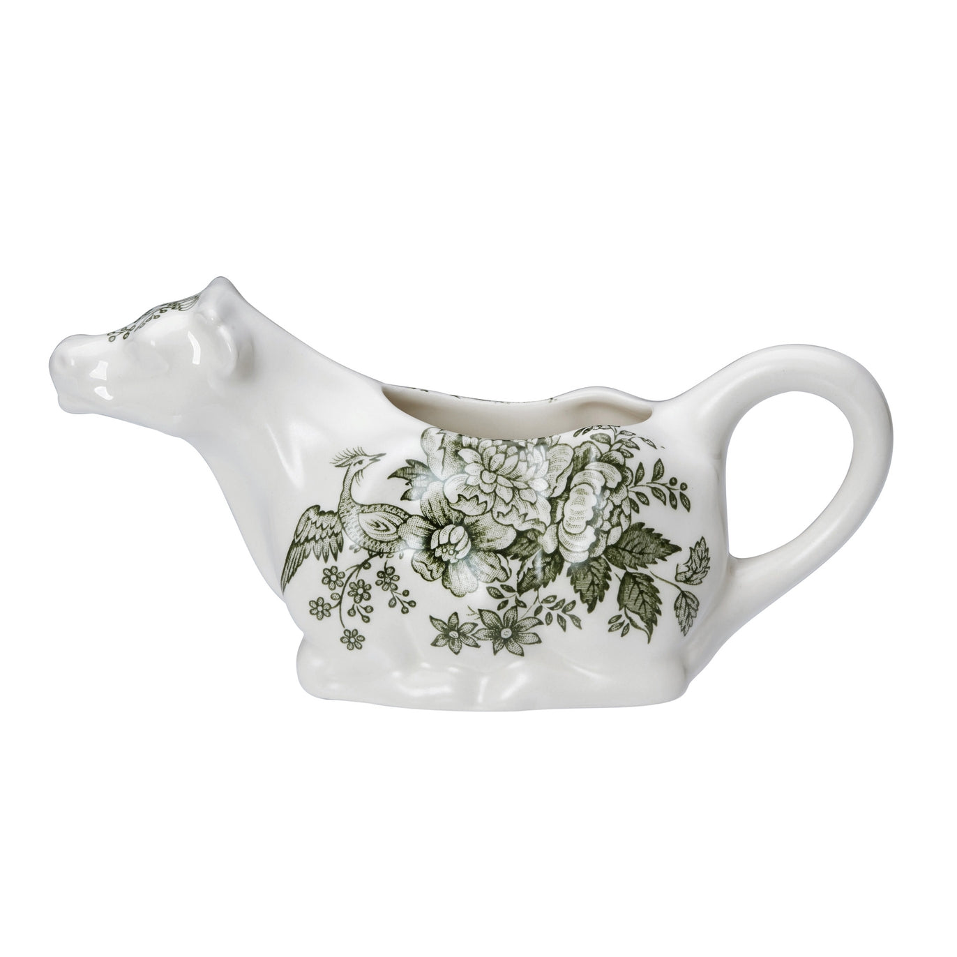 A traditional design with a modern twist, our Green Asiatic Pheasants Cow Creamer brings a royal touch to the dinner table. Uniquely decorated by skilled craftsmen with Burleigh's centuries-old technique of tissue transfer printing from hand-engraved copper rollers. Use for milk, cream, sauce; whatever you like. Presented in an elegant gift box, this striking cow creamer makes a beautiful gift for both tea lovers and Burleigh collectors. Made in the UK.
